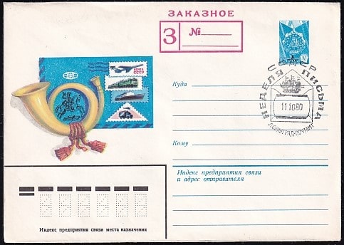 Заказное ХМК со СГ "Неделя письма", 11.10.1980 год, Ленинград