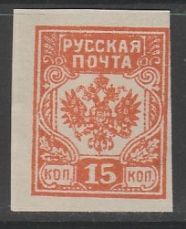 Западная Добровольческая Армия 1919 год. Серия "Герб России. Русская Почта", ном. 15 коп., 1 марка