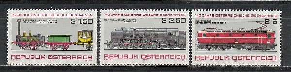 Железнодорожный Транспорт, Австрия 1977 г, 3 марки