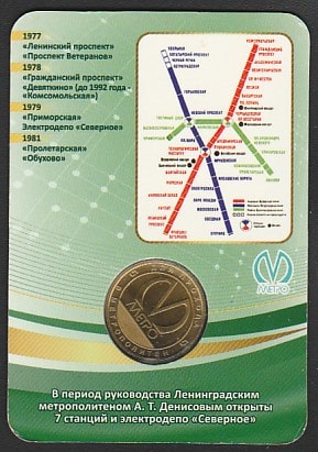 Жетон метро СПб. Руководитель метрополитена с 1976 по 1982 год А.Т. Денисов.