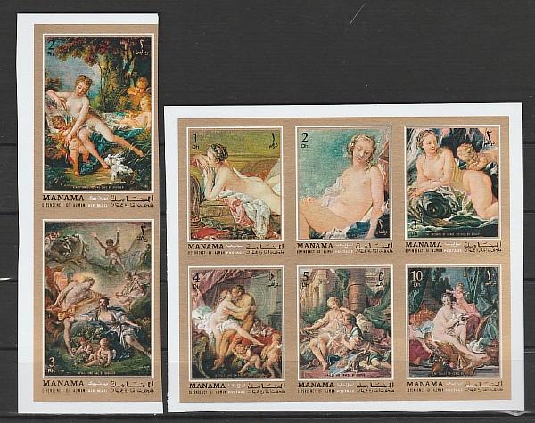 Живопись, Франсуа Буше, Манама 1971, 6 марок сцепки без зубцов