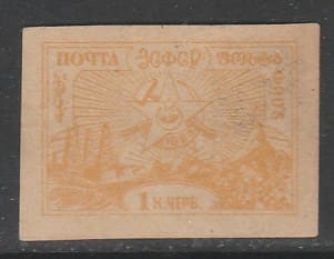 ЗСФСР (Гражданская война) 1923 год. Герб, символика, ландшафт, ном. 1 к., 1 б/зубц. марка (б/клея)