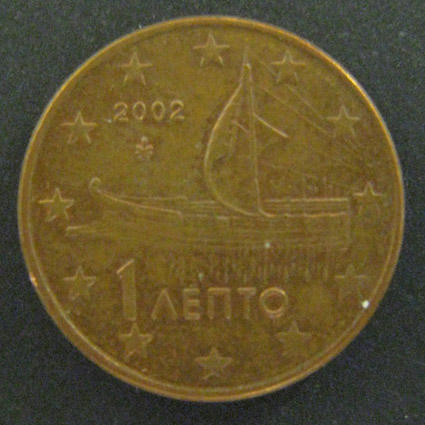 1 евро цент 2002 год. Греция