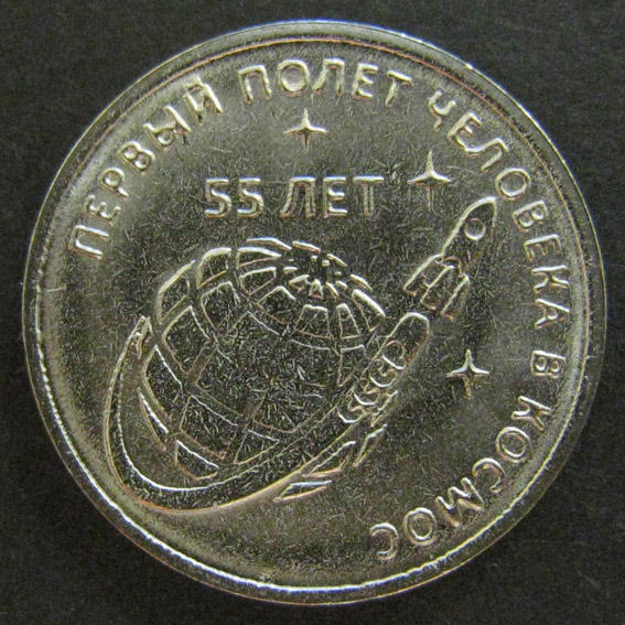 1 рубль. Приднестровье. 2016 г. 55 лет первому полету человека в космос