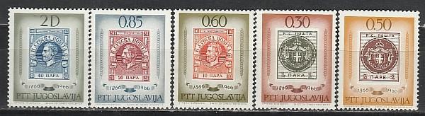 100 лет Сербской Почтовой Марке, Югославия 1966 год, 5 марок Ю.