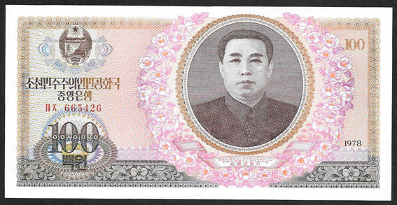 100 вон 1978 года. Северная Корея (КНДР) UNC