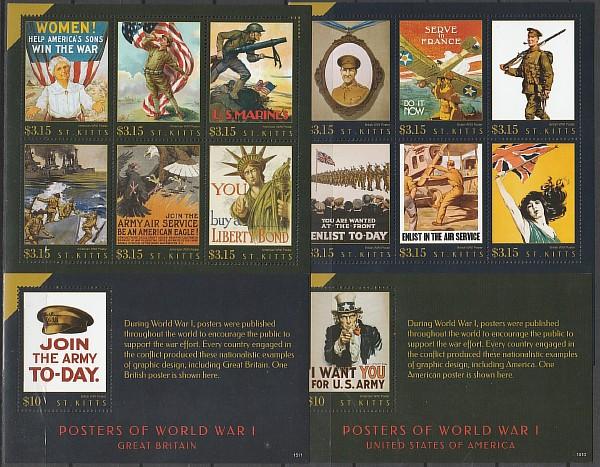 1я Мировая Война, Сент Китс, 2 малых листа + 2 блока