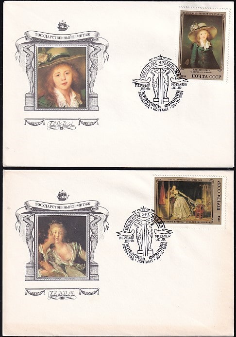 2 КПД со СГ и блоком "Шедевры Эрмитажа. Живопись Франции", 20.11.1984 год, Ленинград