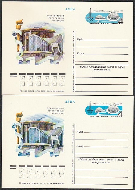 2 ПК с ОМ Игры XXII Олимпиады. Олимпийский спортивный комплекс. Москва 1980 год. Разновидность по цвету.
