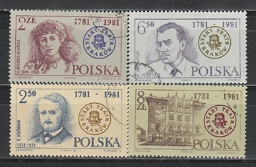 200 лет Театру в Кракове, Польша 1981 год, 4 гашеных марки