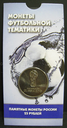 2016 г. 25 рублей, Чемпионат мира по Футболу 2018, логотип FIFA Russia 2018. 1 монета в буклете