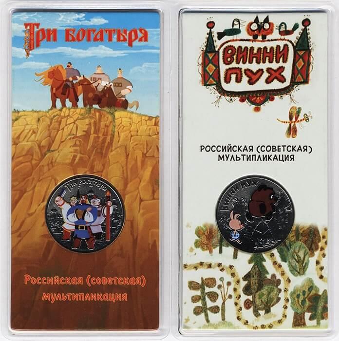 25 рублей 2017 год. Набор 2 шт. Российская (советская) мультипликация Винни Пух и Три Богатыря