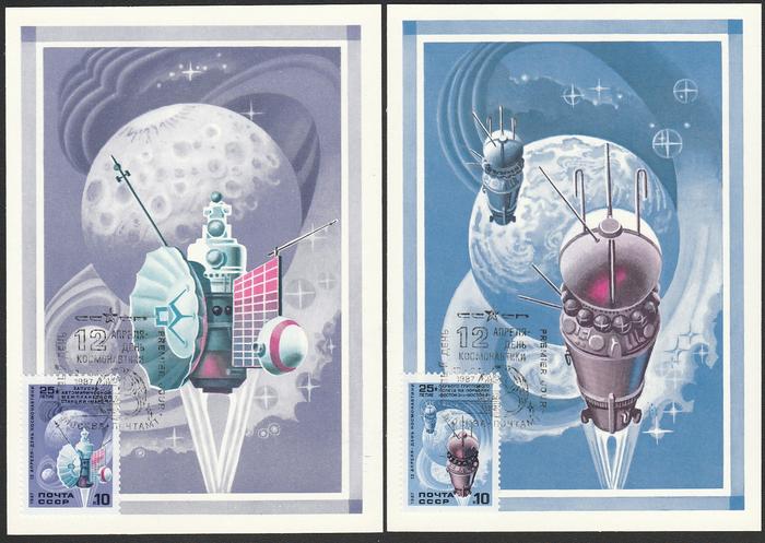 3 Картмаксимума. День космонавтики. Спецгашение "ПД" 12.04.1987 г.