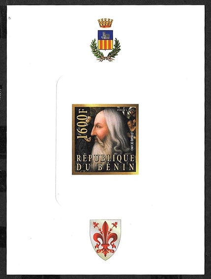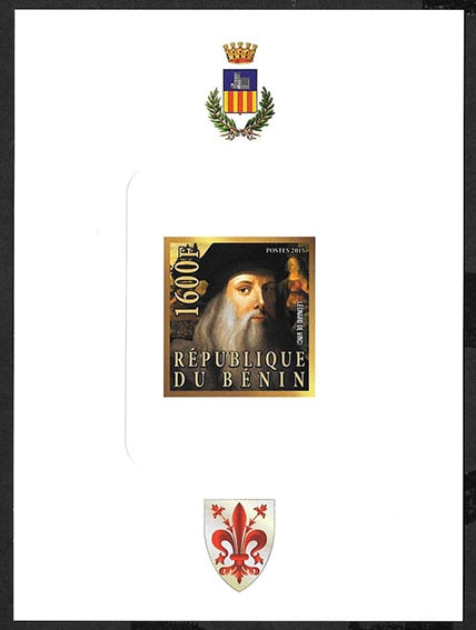 4 Номерных люкс-блока на картоне. Бенин 2015 год. Леонардо Да Винчи