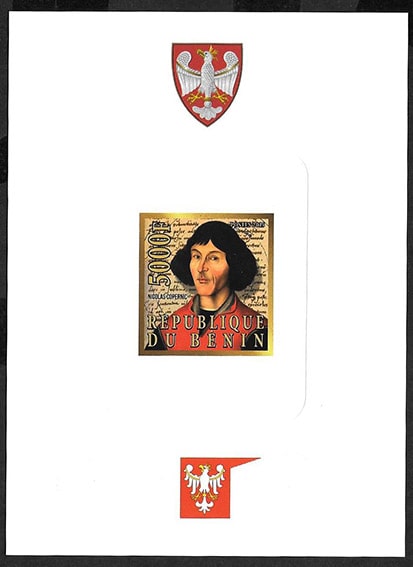 4 Номерных люкс-блока на картоне. Бенин 2015 год. Николай Коперник