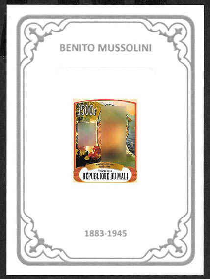 4 Номерных люкс-блока на картоне. Мали 2018 год. Бенито Муссолини