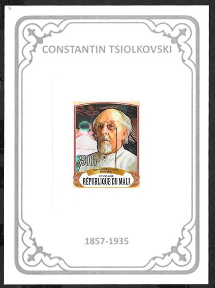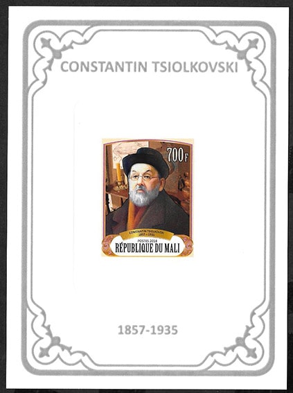 4 Номерных люкс-блока на картоне. Мали 2018 год. Константин Циолковский