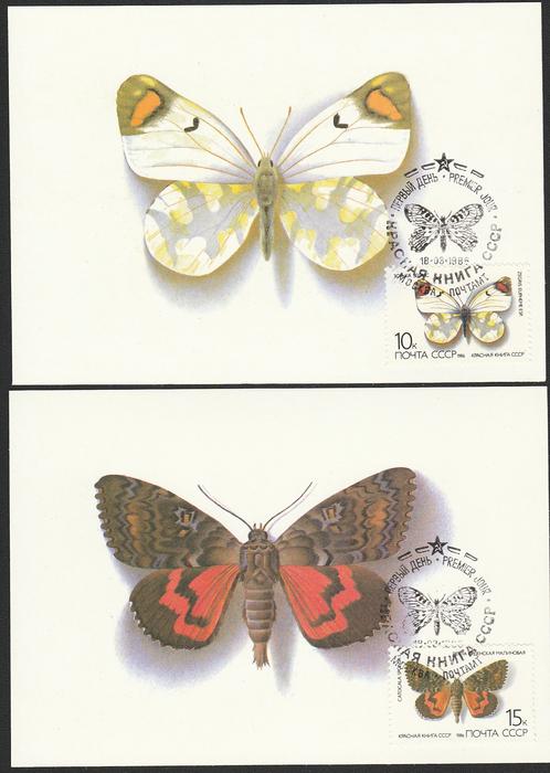 5 Картмаксимумов. Красная книга. Бабочки. Спецгашение "ПД" 18.03.86 г.