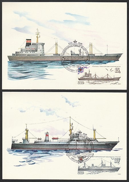 5 Картмаксимумов. Рыбопромысловый флот СССР, 20.07.1983 год, Москва, почтамт