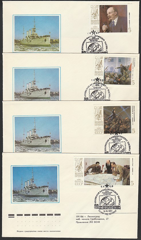 5 Конвертов со спецгашением. Всесоюзная филвыставка. День космической филателии, 18.10.1987 год, Ленинград. почтамт (+1Ю)