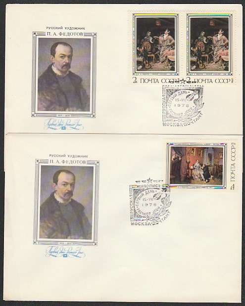 5 КПД. Русская живопись. Картины А.П. Федотова, 15.07.1976 год, Москва, почтамт.