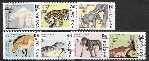 50 лет Варшавскому Зоопарку. Польша 1978 г. 7 гашеных марок.