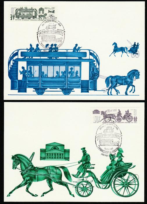 6 Картмаксимумои. История транспорта Москвы. Спецгашение "ПД" 10.12.81 г.