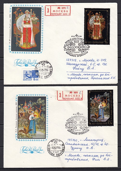 6 КПД Народные промыслы, Федоскино, Москва 16.09.1977 год, прошли почту