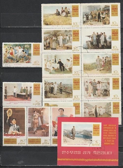 60 лет Ким Ир Сену, КНДР 1972 год, 15 гашёных марок + блок