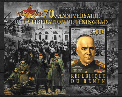 70 - я годовщина освобождения Ленинграда. Бенин 2014 г, блок