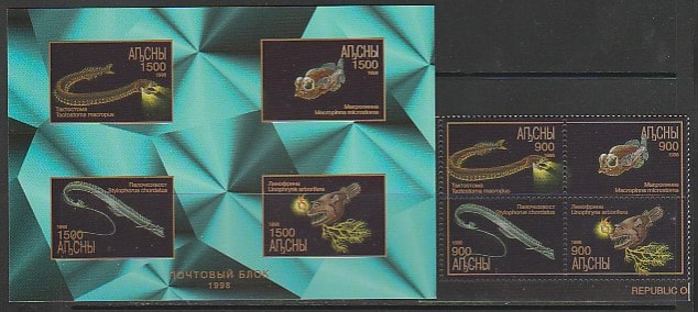 Абхазия 1998 год. Глубоководные рыбы, квартблок + б/з блок (003.241)
