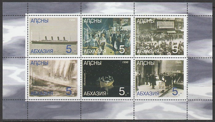 Абхазия 1998 год. Круизный лайнер "Титаник", малый лист (н0,22