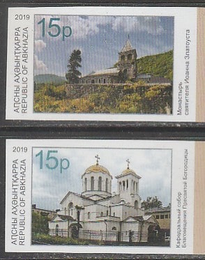 Абхазия 2019 год. Церкви, 2 б/зубц. марки (н