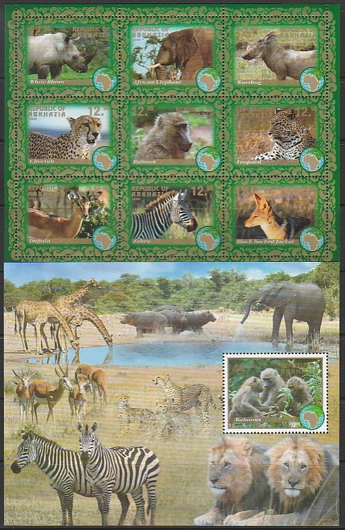 Абхазия (Республика) 2007 год. Африканская фауна, малый лист + блок (003.873)