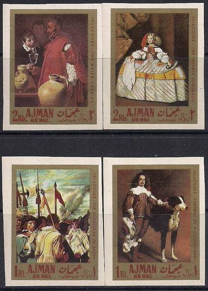 Аджман 1968 год. Картины Диего Веласкеса. 4 марки без зубцов