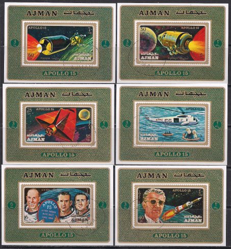 Аджман 1971 год. "Аполлон-15". 6 блоков без зубцов (гашеные)