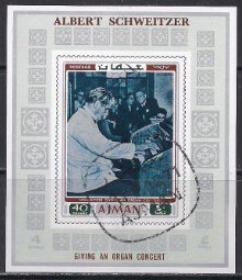 Аджман 1971 год. А. Швейцер дает органный концерт. Гашеный блок без зубцов
