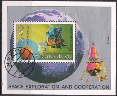 Аджман 1972 год. Космические исследования. Гашеный блок