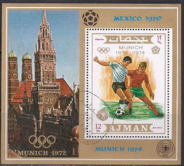 Аджман 1972 год. Летние Олимпийские игры в Мюнхене. Гашеный блок