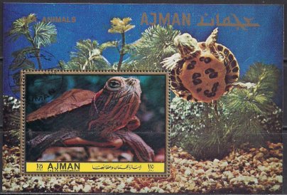 Аджман 1972 год. Морские черепахи. Блок (гашеный)
