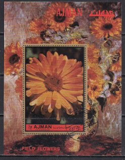 Аджман 1972 год. Полевые цветы. Гашеный блок
