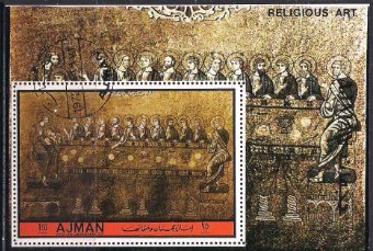 Аджман 1972 год. Религиозная живопись (1). Гашеный блок