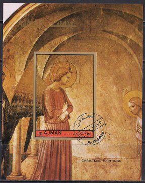 Аджман 1972 год. Рождественская живопись. Гашеный блок без зубцов
