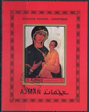 Аджман 1972 год. Русская живопись. Рождество. Гашеный блок без зубцов