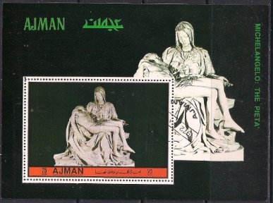 Аджман 1972 год. Скульптура Микеланджело "Пьета". Гашеный блок