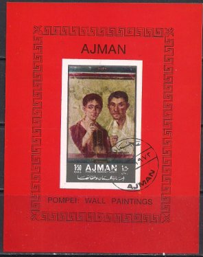Аджман 1972 год. Живопись Помпеи. Гашеный блок без зубцов