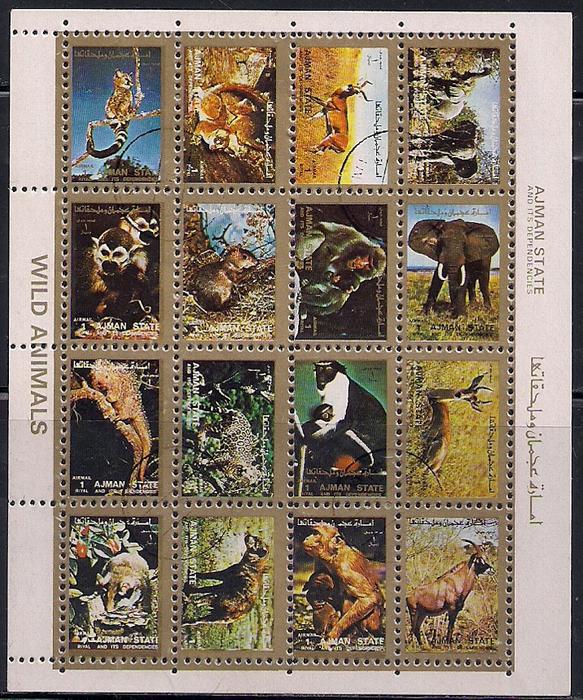 Аджман 1973 год. Дикие животные. 1 гашеный малый лист