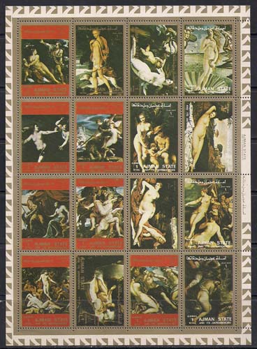 Аджман 1973 год. Картины ню. 1 лист (10м)