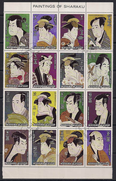 Аджман (Манама) 1972 год. Японская живопись. 16 гашёных марок