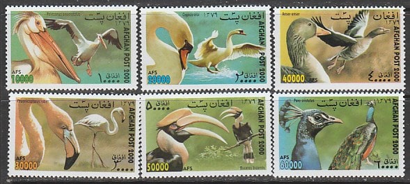 Афганистан 2000 год. Птицы, 6 марок. (5,5)